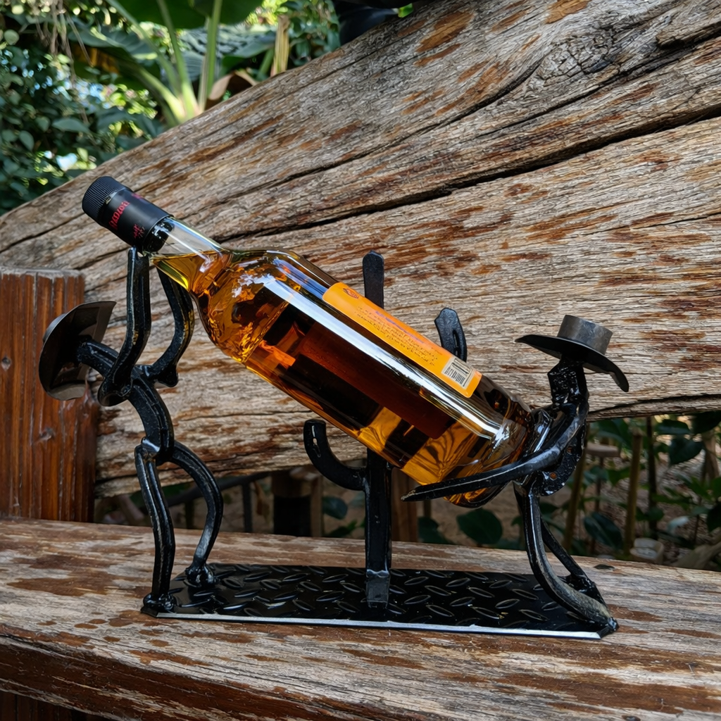 O Suporte de Garrafa em Ferraduras não foi criado apenas para segurar uma bebida. Ele foi feito para fazer parte do cenário onde a conversa acontece